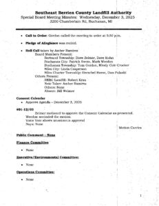 December 3, 2025 Special Board Meeting Minutes